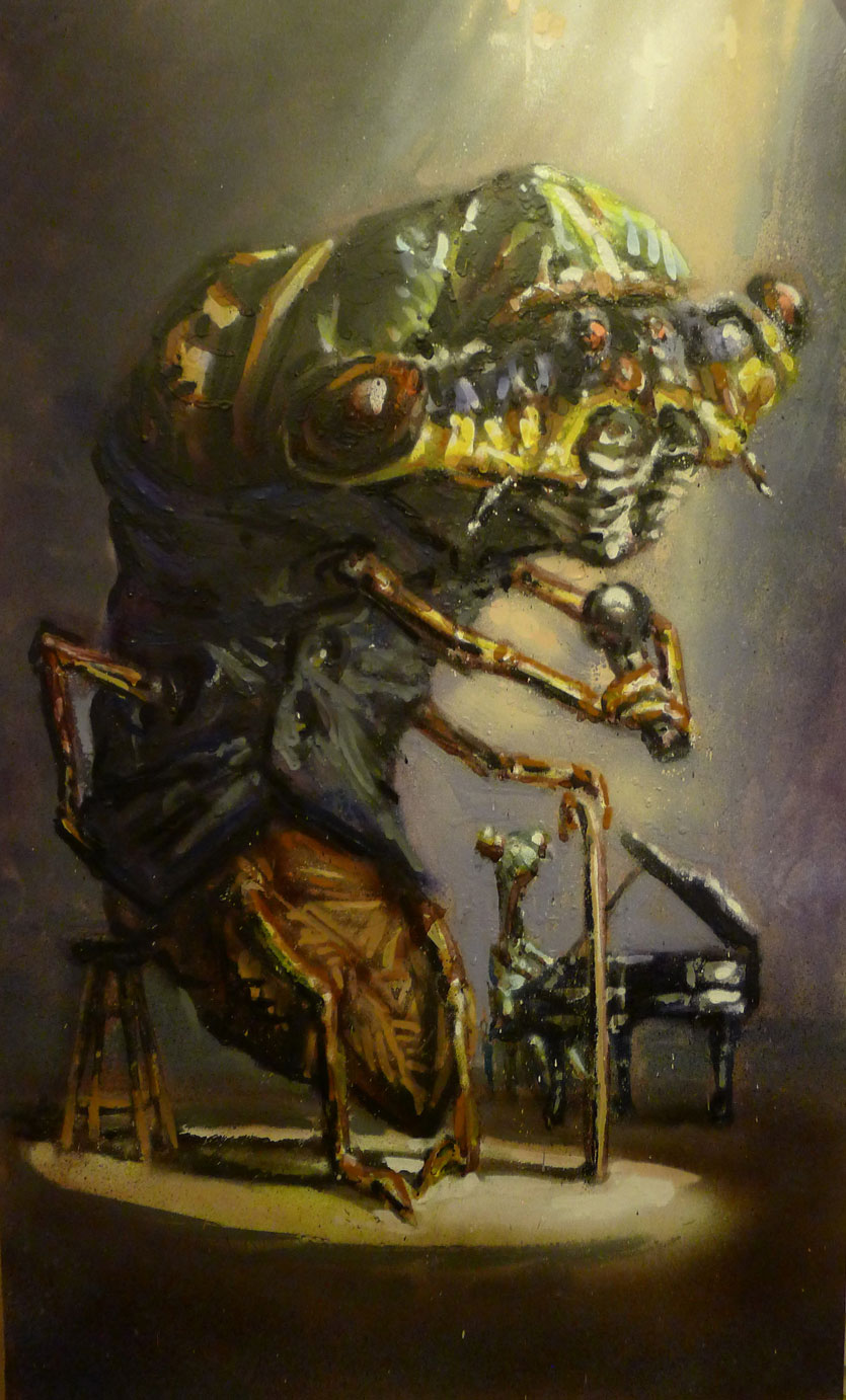 This painting is the third in aerosol for the Leon show, and it was executed in the same fashion as the prior two, beginning with a light and shadow pattern over a toned ground, then applying opaque color and glazes over the top. Really enjoy the finish and mood of this piece, more of a melancholy piece to accompany the other more macabre works. I also feel it rounds out the works, and I have another to unveil in tomorrows post! I used another of my close up shots from the insect reference files, just love this specimen and how it translated to the final painting. I really hope to see you all at the show tomorrow, and I will also have small prints available of all the new works for "Of the Melancholy and of the Macabre". Info and address are listed on the flyer, look for more tomorrow and come to the show! Thanks for stopping in!